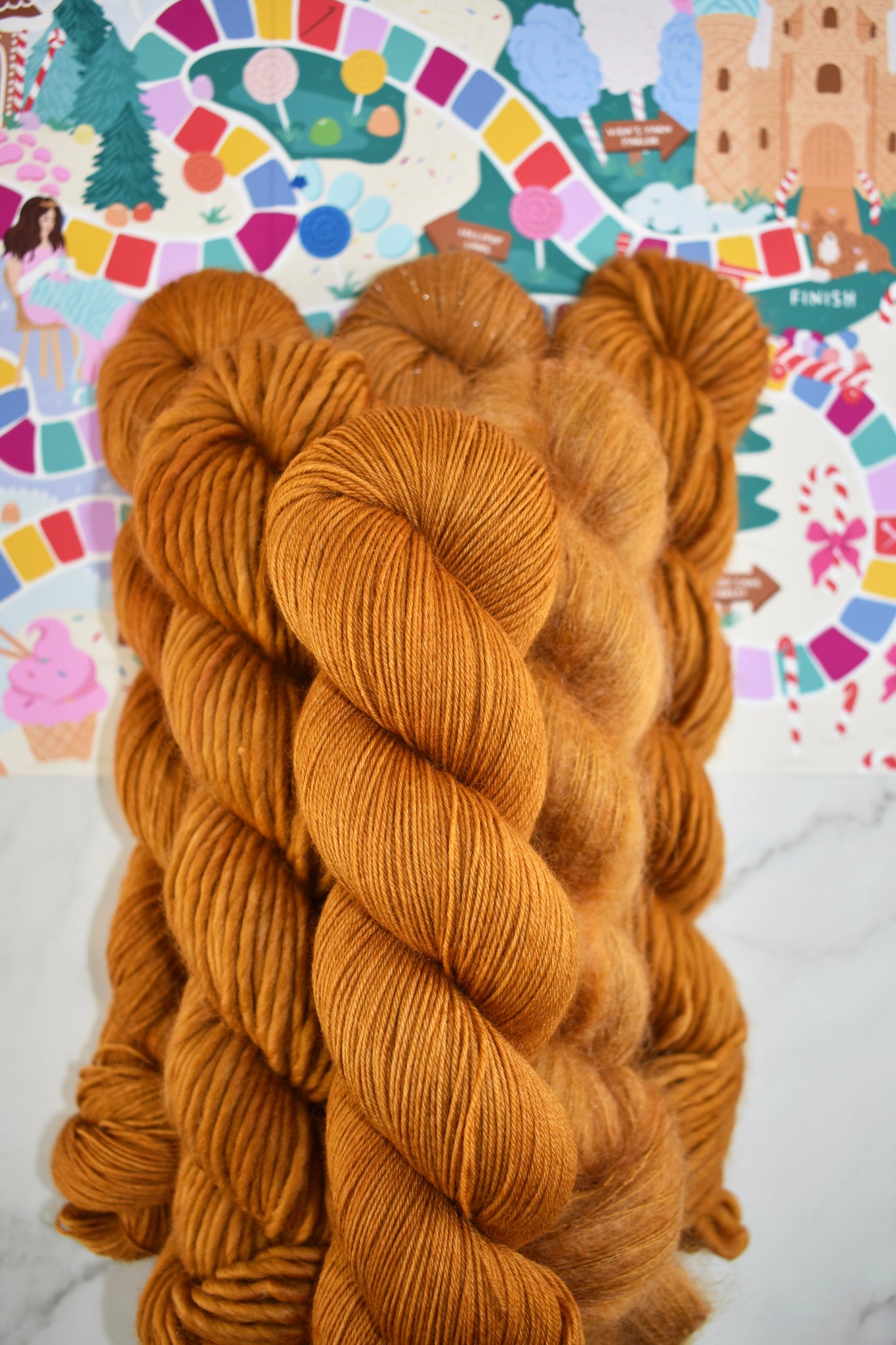Think swirls of toffee, butterscotch, and caramel fudge — all blended into one delicious skein that’s as warm and playful as our favorite furry friend. 🧡