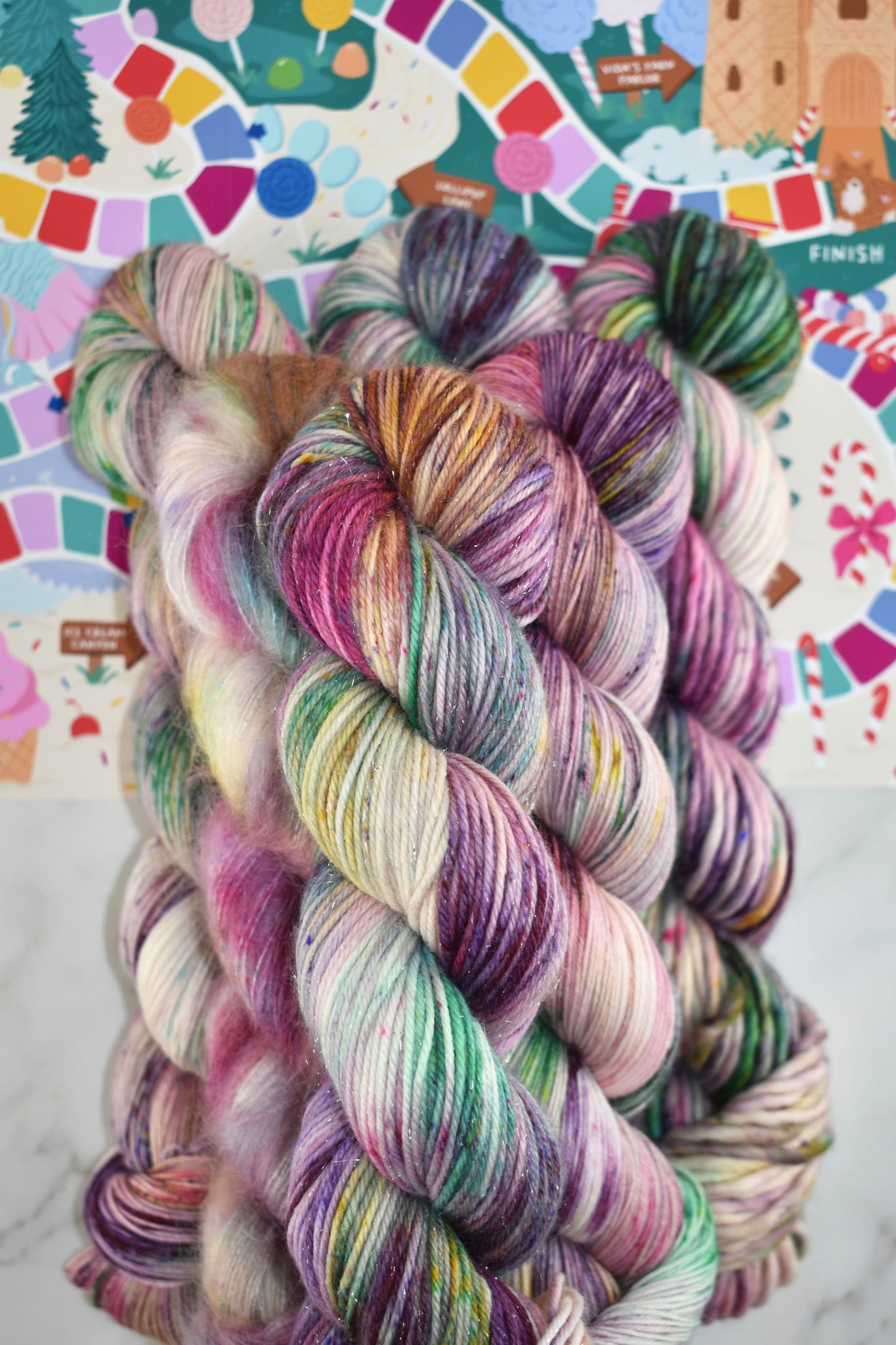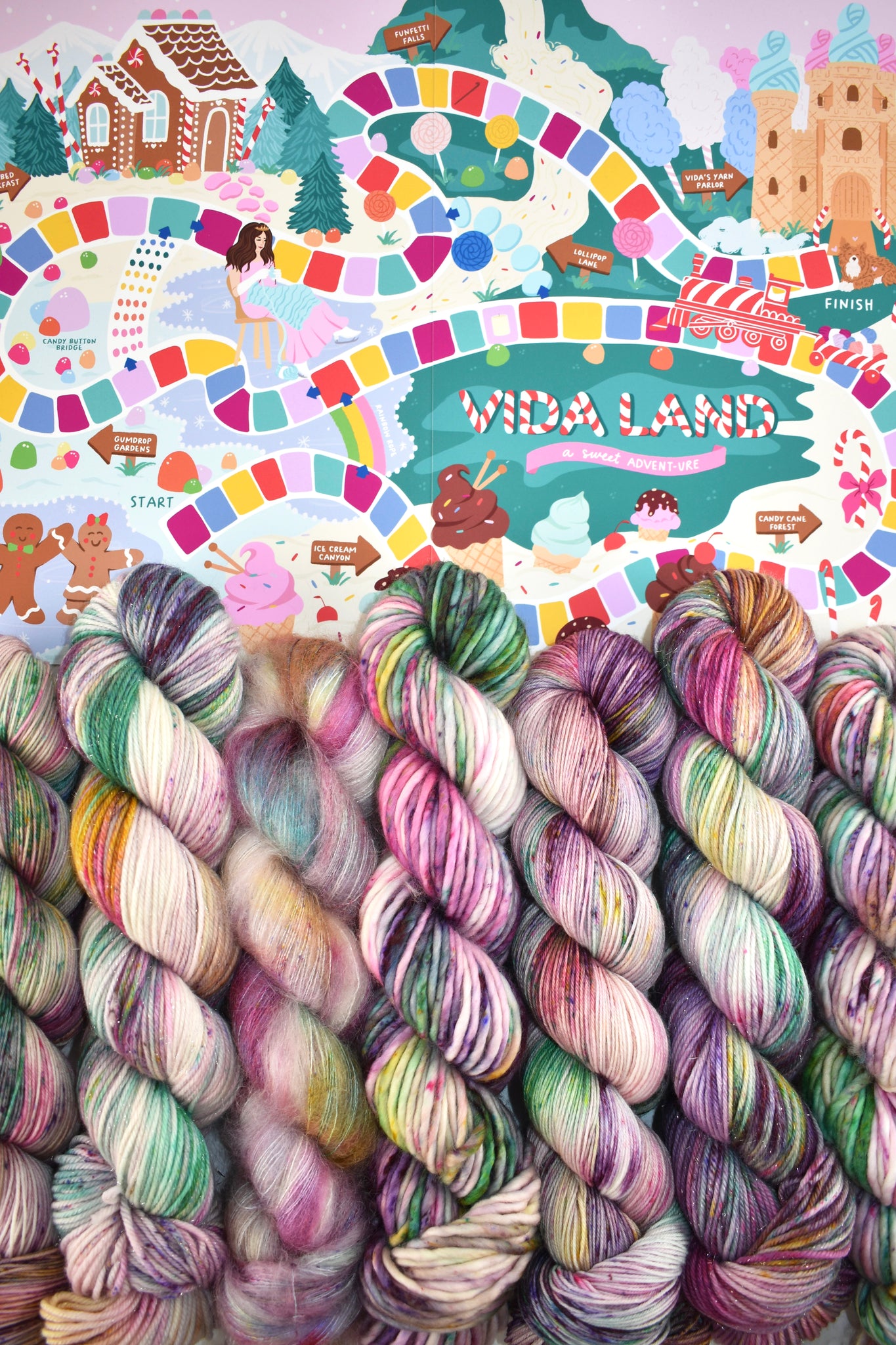 Imagine sugar-dusted petals, glimmering gumdrops nestled in mossy greens, and golden sunlight dancing across every skeins. That’s the world of Gumdrop Gardens. 🌈